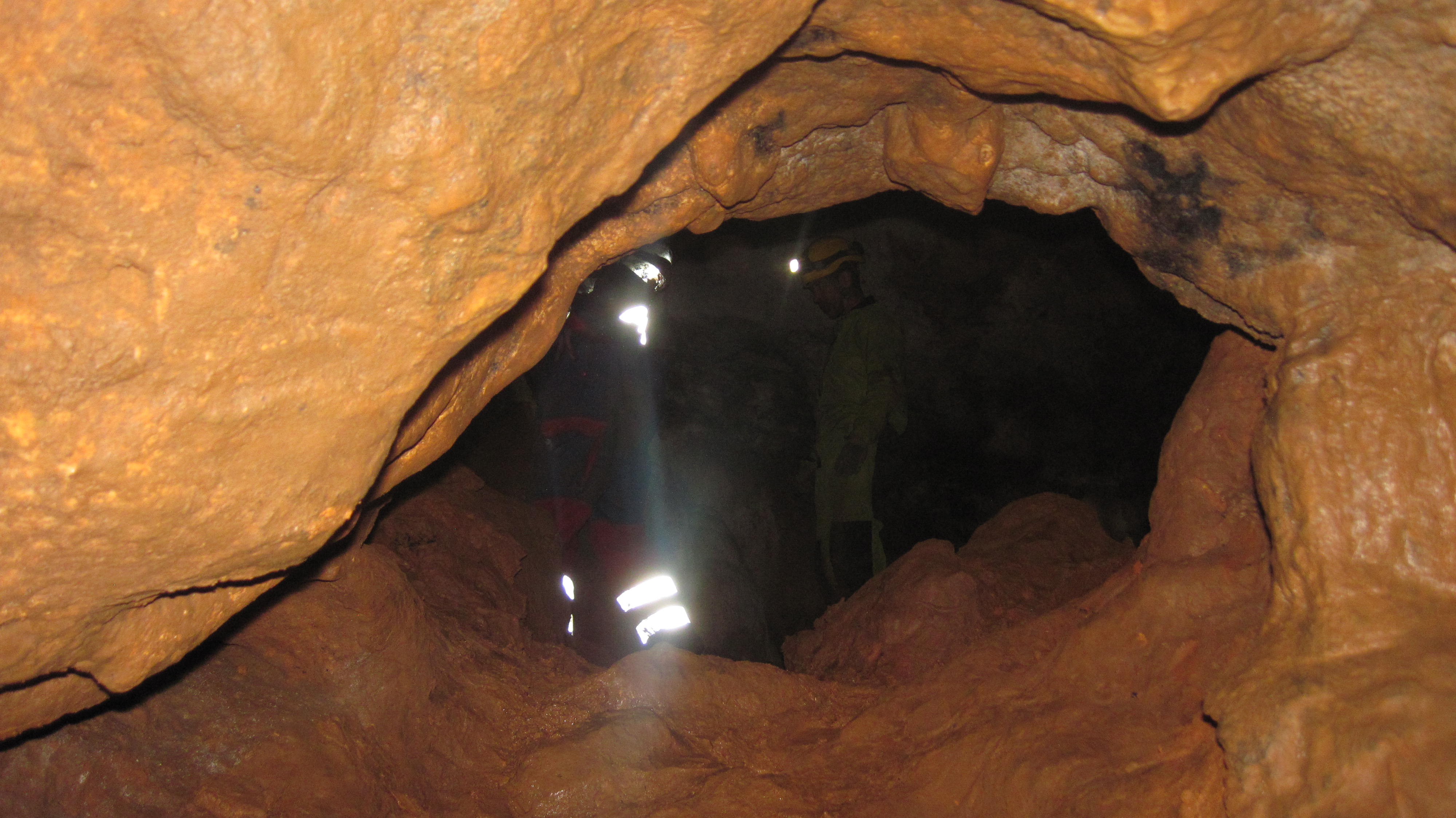 | 21/01/2024 Douanenche de Courry (Gard) Bilan de la sortie: Un ressaut de 5 mètres, nous permet de retrouver un actif débitant environ 2 litres / secondes, la progression ensuite est variée mais jamais trop large. La rivière a entaillé les couches sous différents angles : à contre-pendage, dans le sens du pendage ou sur le côté des strates. Il faut progresser parfois à l'égyptienne, parfois à quatre pattes. Quelques étroitures ponctuent la progression. Au bout d'un peu moins de 30 mn, nous faisons une pose quelques dizaines de mètres avant le siphon, terminus de la rivière, un petit volume me permet d'enfiler la combinaison. Ensuite à quelques mètres de l'eau, dans une galerie recouverte d’une couche de 10 cm d’argile, je finis de m'équiper : bouteilles, lampes, ciseaux, tablette pour effectuer la topographie... Je m'immerge avec les bouteilles en latéral, il n'y a pas de fil. Toute de suite la galerie prend la forme d'un laminoir calé sur un inter-strate. La pente est à 45°, heureusement, il y a moins d'argile qu'aux abords du siphon. La largeur est de 1.5 m et un hauteur de 60 cm, parfois moins. Des graviers sont présents au sol. Au bout de 10 mètres la galerie se pince franchement à la profondeur de moins 5 mètres, j'essaie de m'engager, mais une dalle au sol, gène le passage. Cela à l'air de légèrement s'agrandir après la dalle, mais le casque avec les lampes sur les côtés ont juste la hauteur de la galerie, je décide de faire demi-tour et sortir de l’eau. Le temps de planter un Spit pour aligner le fil, je retourne revoir le terminus. Juste avant mon précédent terminus, je fais un demi-tour pour avancer les pieds en premier. Malheureusement, la hauteur de la galerie ne fait qu'un peu plus de la longueur d'une chaussure en hauteur, cela ne passera pas en plongée, à part pompage et désobstruction. Je coupe mon fil et retourne vers la sortie. Sorti de l'eau, nous récupérons tout le matériel et enchaînons sur la progression dans le méandre de la rivière. Nous sortons de la cavité à 15h00. Un grand merci à mon équipe de porteurs. TPST : 4h Participants : Benjamin DUBOIS, Raphaël LOUYS, Célien ABEILLON et Laurent CHALVET Participants : |
