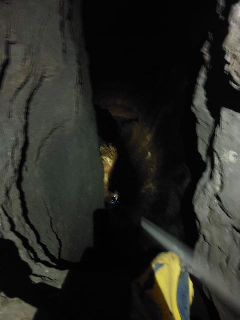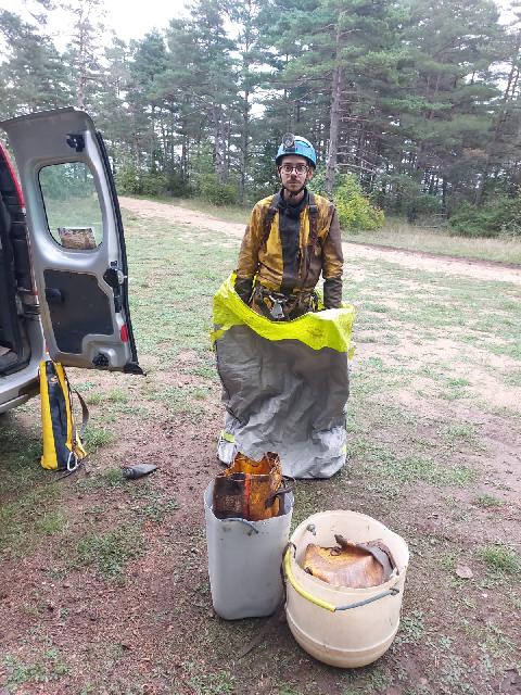 | 24/09/2025 Aven du Rabiné Bilan de la sortie: Environ 15 m de montée dans une cheminée au calcaire façon « gaufrette » – tellement pourrie qu’on se demande si ça tient par miracle (en réalité ça ne tiens juste pas). Aude mène avec brio les deux bons premiers tiers de l’escalade. Quelques pulses plus tard, on sent que ça « cut » en haut, il y a un espoir… mais pas de bol, ça débouche simplement sur une lucarne vers la grande salle adjacente. Pas grave : c’est exploré, et désormais prêt à être topographié par les experts aveyronnais. Trois goujons posés en tête de puits. Dans une roche comme ça, ça ne mange pas de… gaufre. On s'est vraiment éclatés ! Participants : |